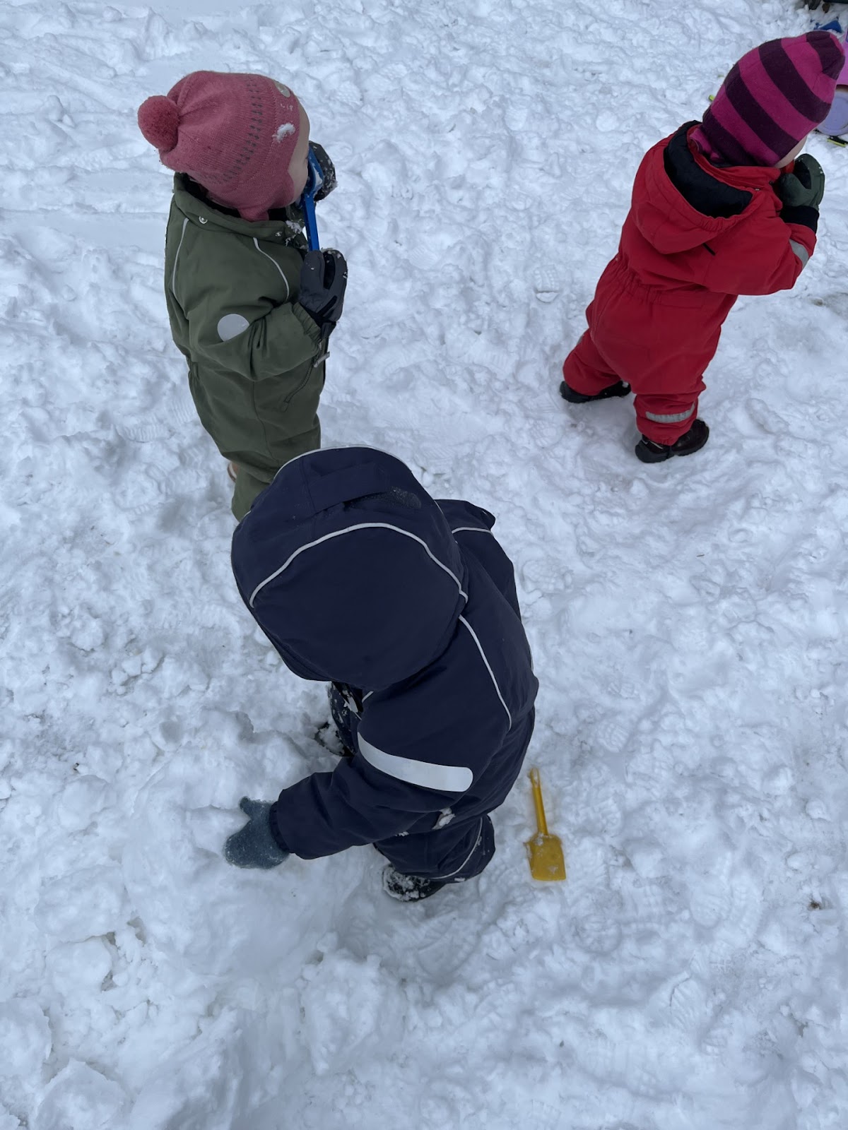 Det var akkurat litt snø på bakken til at vi kunne grave med spader og lage snøkaker.